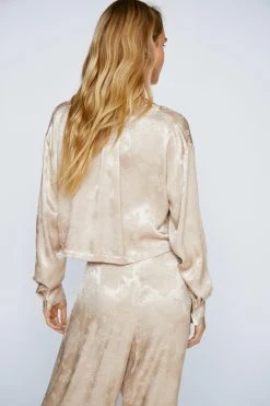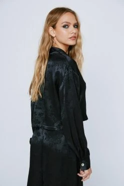 Styling with satin. Complete the look by styling with the matching pants and strappy heels.