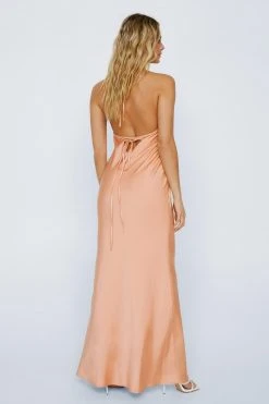 Turn heads. Feel fierce in our maxi dress, made in high quality satin, with a stelar straight fit, and a stiking plunge neckline. Pairs well with strappy heels for a look perfect for wedding guest days, prom nights, and upcoming occasions.
