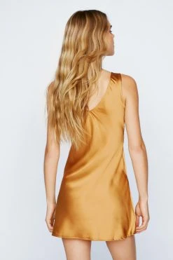 Evening staple alert. Feel confident in our mini dress, made in high quality satin fabric, with a stellar straight silhouette, and a flattering plunge neckline. Pairs well with strappy heels for an elevated look that will take you anywhere from parties and happy hours to date nights and occasions.