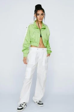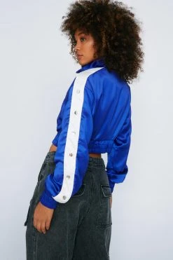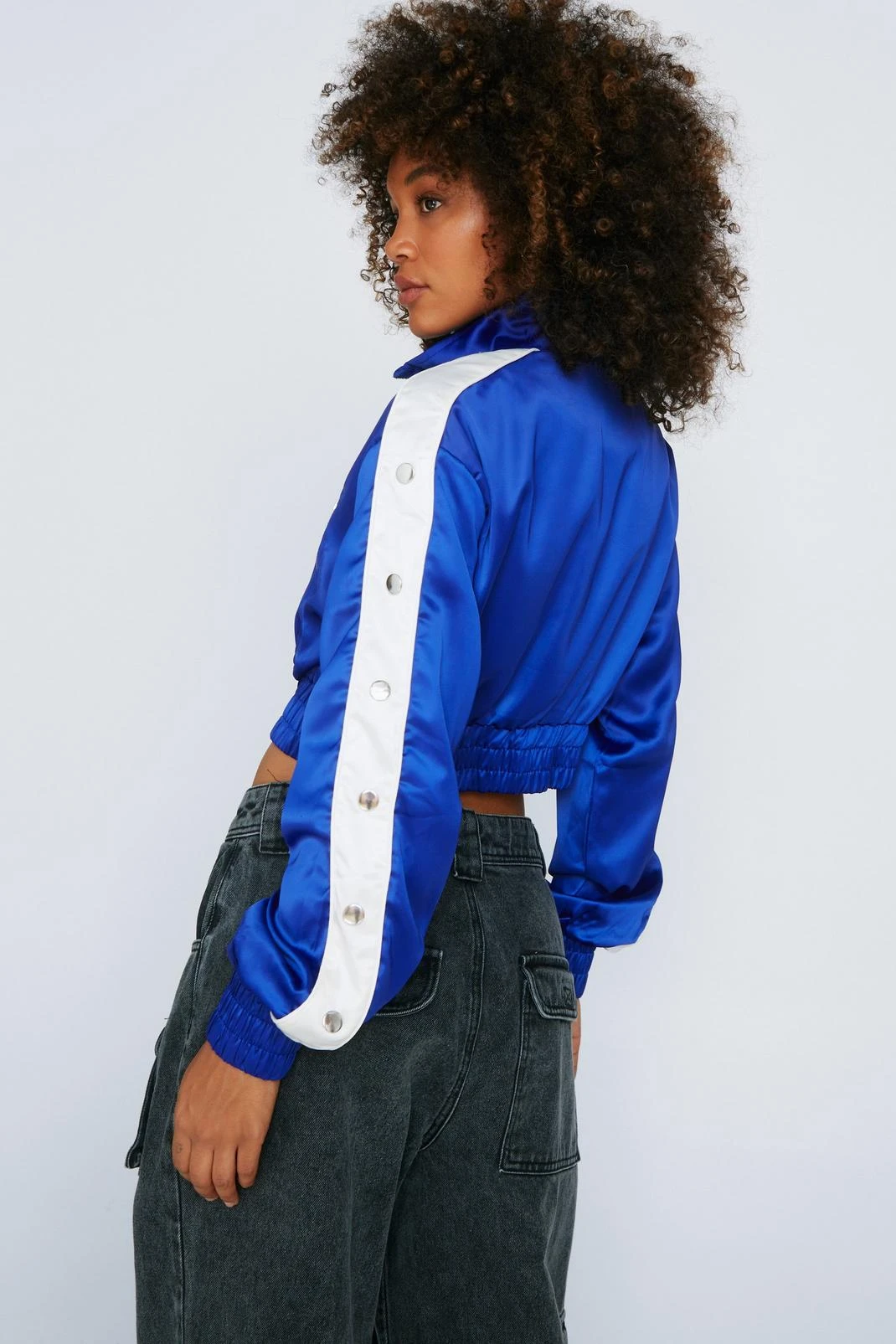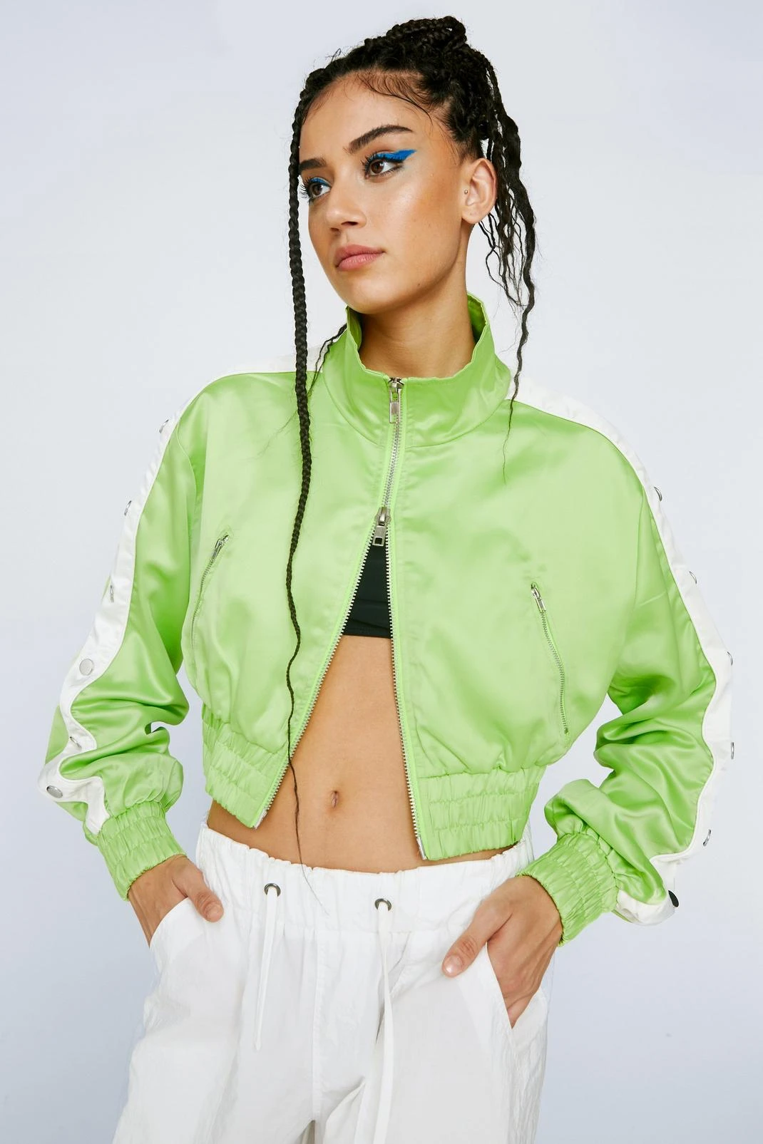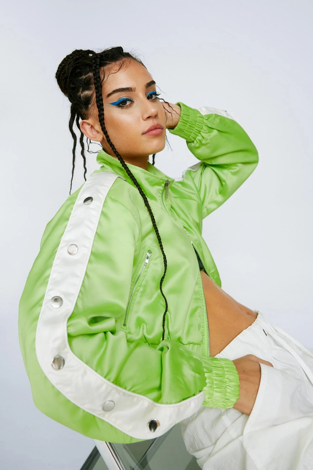 Just popping out. Feel fierce in our popper jacket, made in high quality satin fabric, with a comfortable, relaxed fit, and metallic popper button features. Wear with cargo pants or sweatpants for a daytime look that you’ll keep coming back to, whether you’re heading to the office, on a day out with the girls, or need an extra layer for your festival weekender.