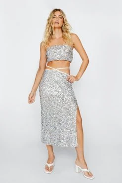 - Sequin Bandeau Crop Top and Midi Skirt
