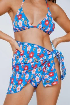 Time for a dip. Wear our shirred floral bikini when lounging by the pool, and throw on the matching sarong for trips to the bar.