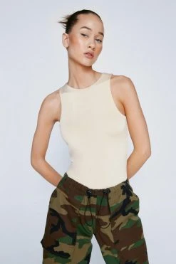 Elevated staples. Feel instantly put-together in our bodysuit, in high quality opaque fabric, with a classic racer design, higih neckline, and multiple colorways. Pairs well with cargo pants, jeans, skirts, and more for wear to any occasion in any season.