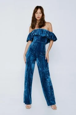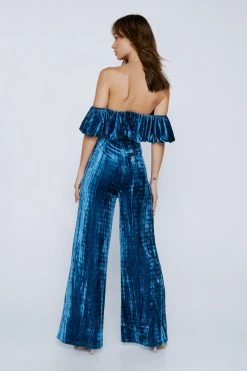 No frills. Our velvet bardot jumpsuit is perfect for holiday party season and beyond, and looks just as good as it feels on.