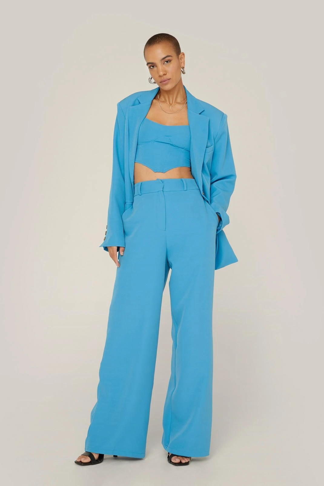 Introducing Nasty Gal x Maeve Reilly—our noteworthy fall collection styled and lead by the world-renowned stylist. These pants feature a high waisted, wide leg silhouette, zip fly closure, and belt closure. Style yours with the matching square neck corset top and strappy heels.