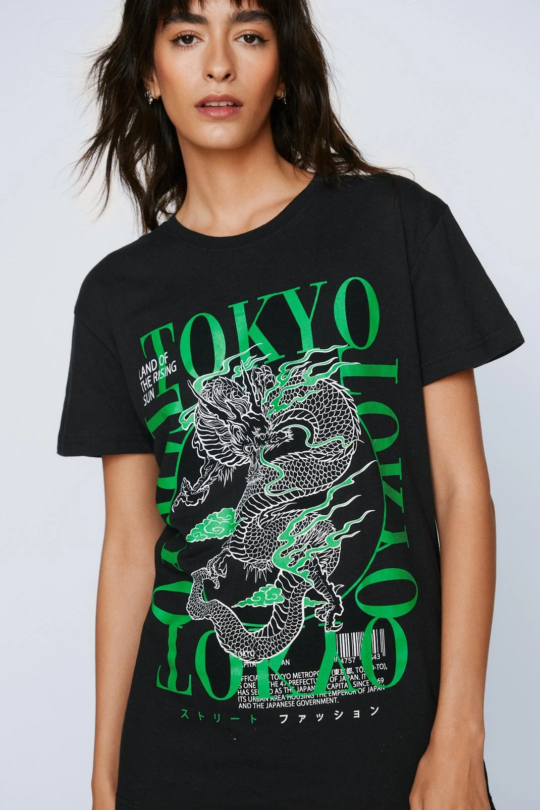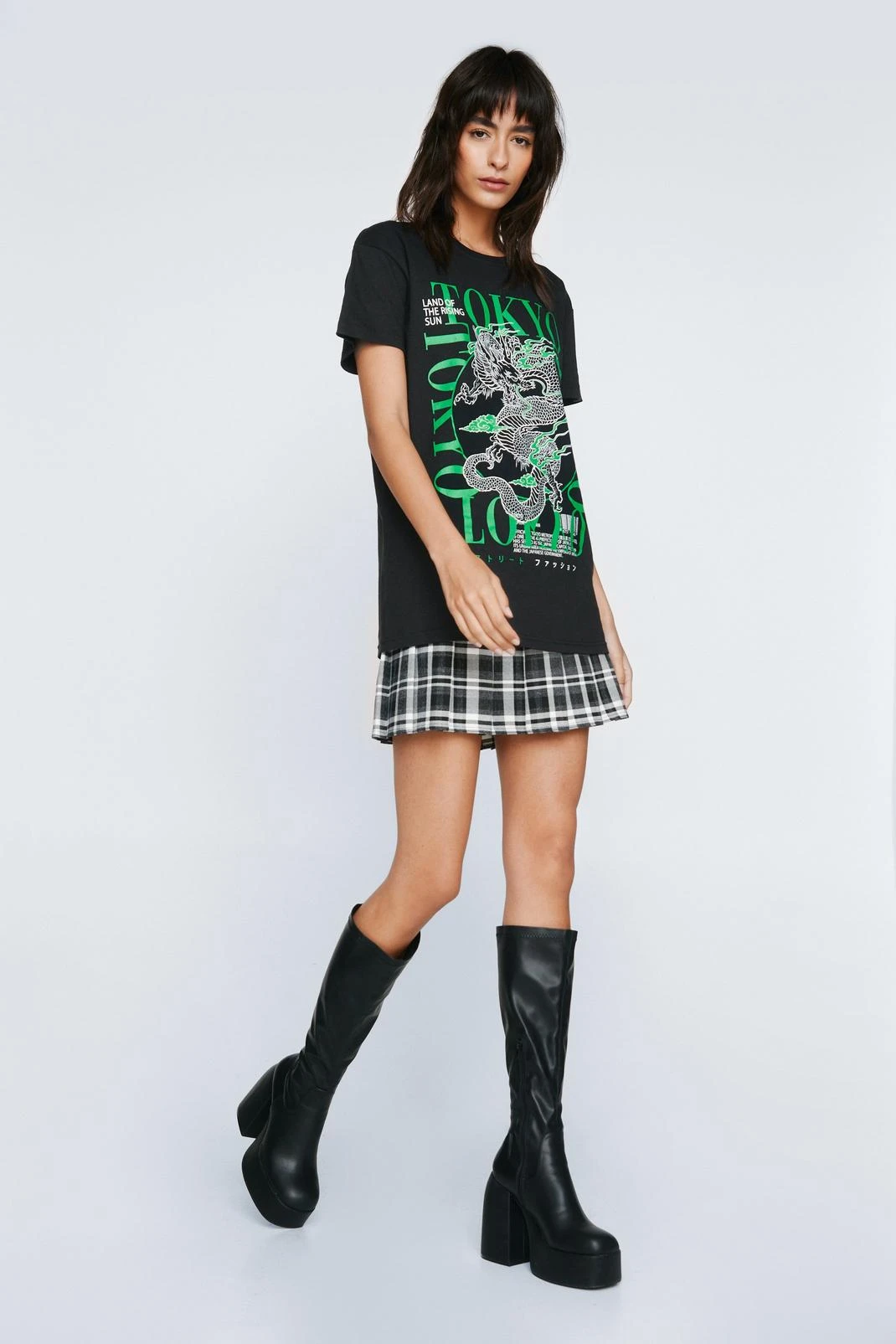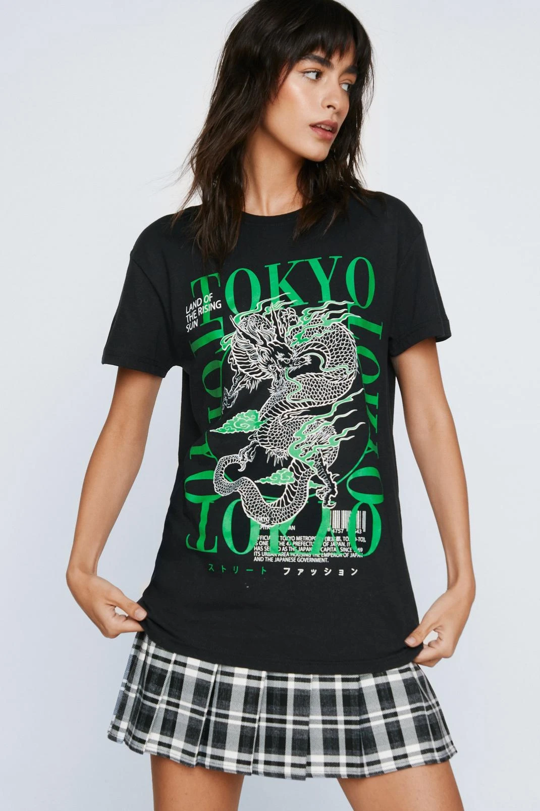 On top of it. Style our Tokyo graphic t-shirt with a mini skirt or combat pants and sneakers.