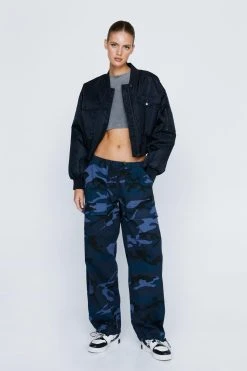 Leg day. Feel ready to seize the day in our cargo pants, with a classic camo print, a flattering wide leg fit, and a comfortable mid rise waistline. Pairs well with crop tops and sweaters for an interseasonal look that will take you anywhere from coffee runs to casual office days to brunch dates.