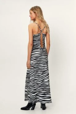 - Zebra Print Cowl Neck Maxi Dress